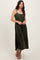 Olive Pleated Sash Tie Midi Dress