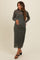 Olive Shimmer Mesh Long Sleeve Ruched Maternity Midi Dress