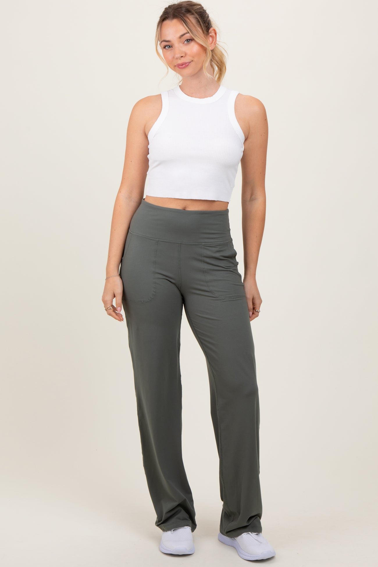 Stay comfortable and stylish with our Olive Straight Leg Yoga Pants. Made from a soft, stretchy fabric blend, these pants offer a flattering high-rise fit and a relaxed straight leg silhouette for all-day ease. Perfect for yoga, gym sessions, or casual wear, they feature convenient front pockets and a smooth waistband that stays in place without digging in. The versatile olive shade pairs effortlessly with your favorite tops and sneakers. Embrace both function and fashion in this must-have athleisure essential. Available in multiple sizes for your perfect fit.