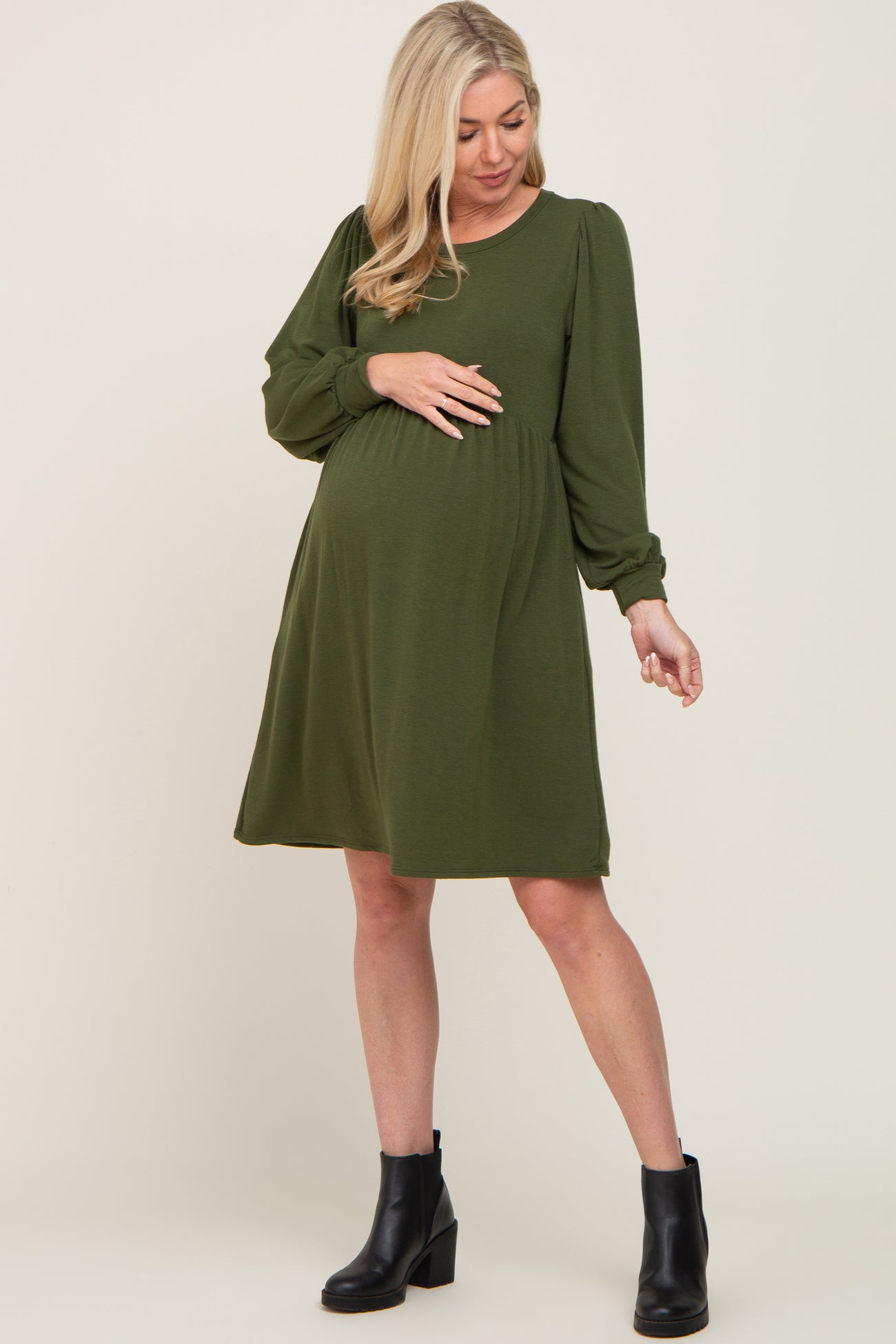 Olive Terry Knit Long Sleeve Maternity Dress