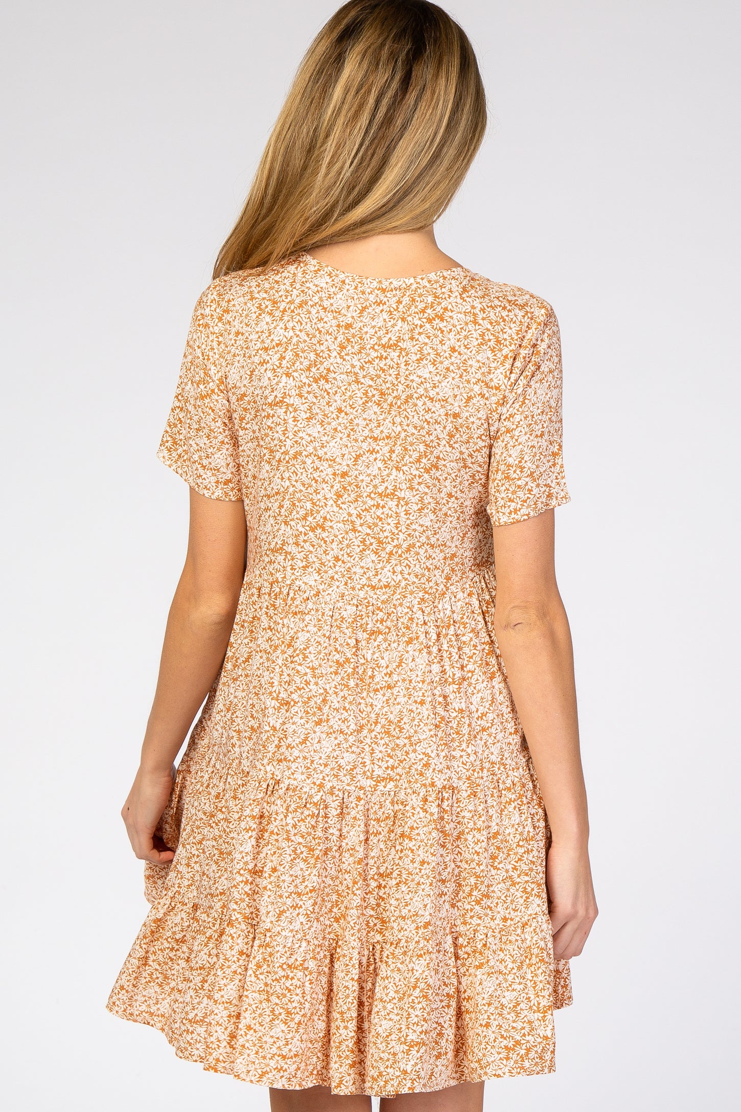 Orange Floral Ruffle Tiered Button Front Maternity Dress