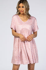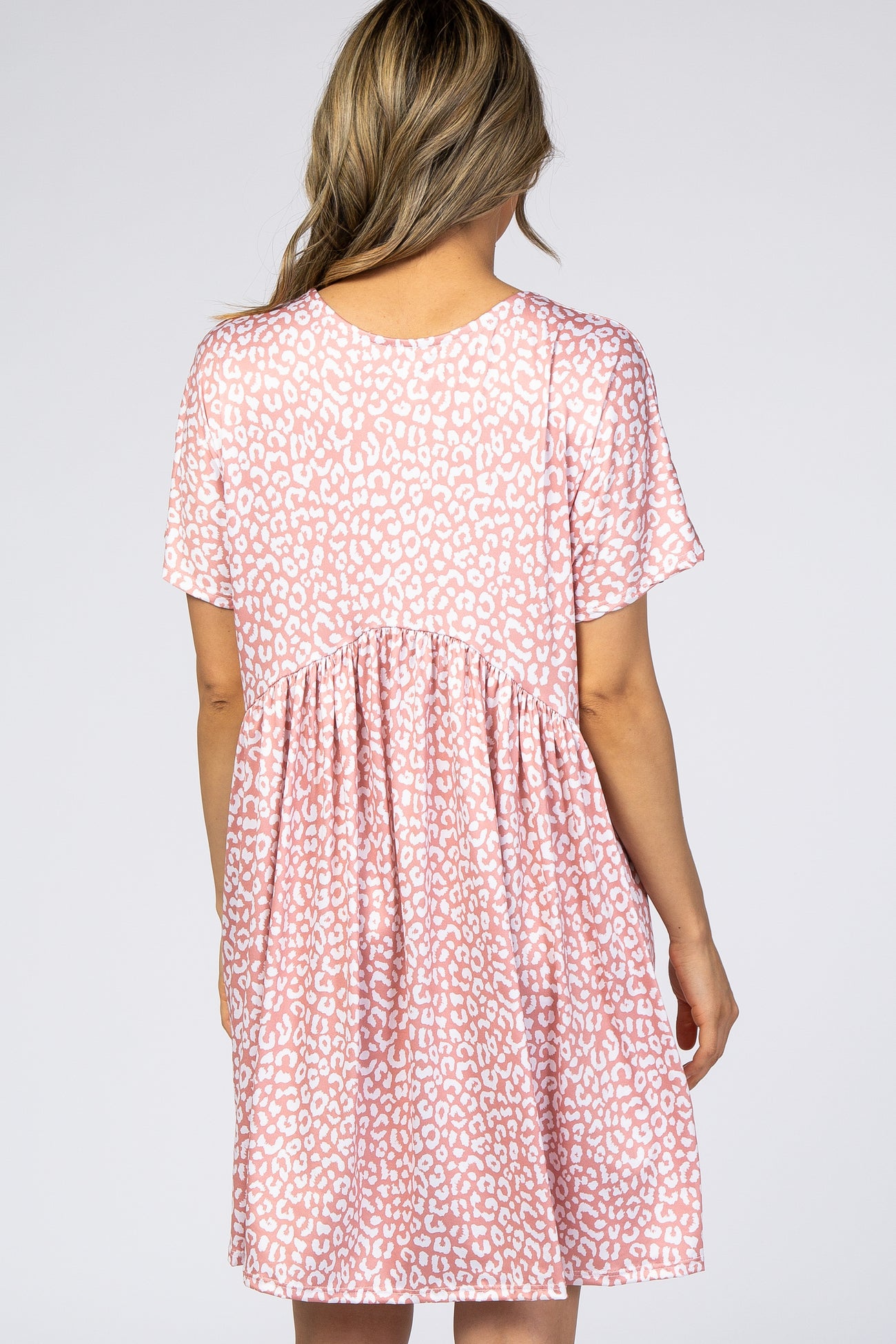 An animal print short sleeve dress. Includes rounded v-neckline and empire waistline.