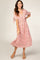 A floral print midi dress, featuring a V-Neck, button closures, a smocked waistline and tie sleeve details.