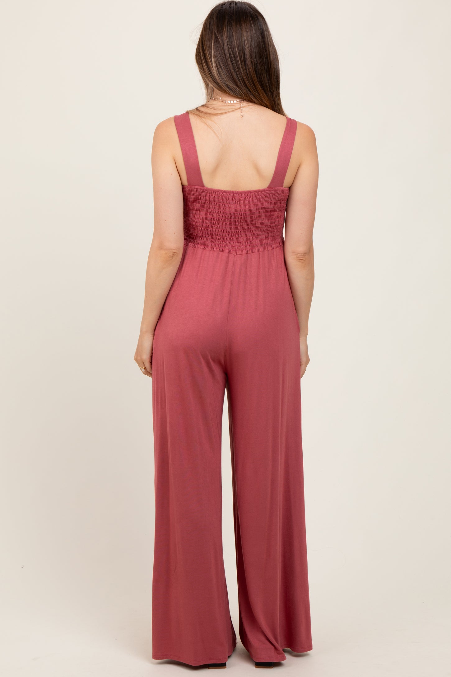 Pink Sleeveless Wide Leg Maternity Jumpsuit
