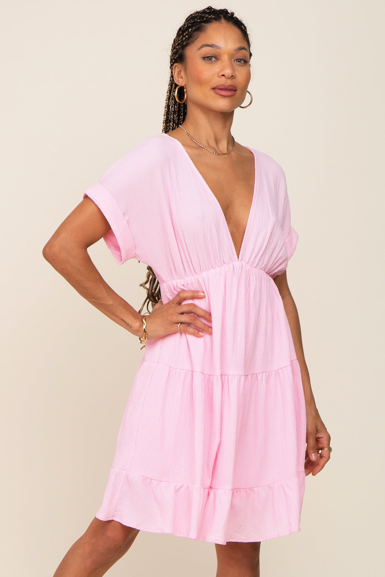 Pink V-Neck Tiered Cutout Back Maternity Dress