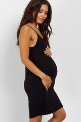 A solid maternity sleep dress featuring cami straps and a rounded neckline.