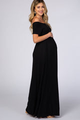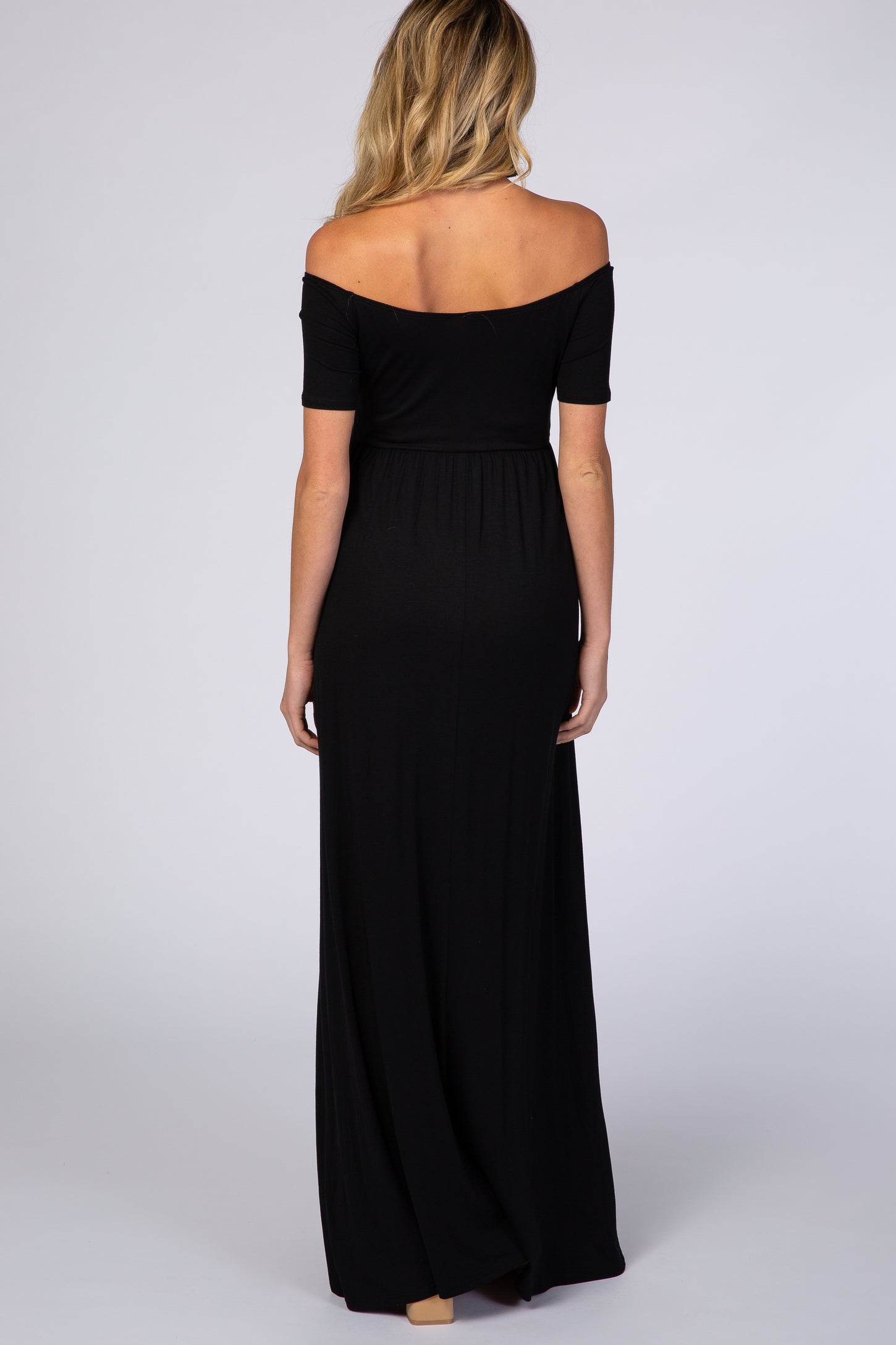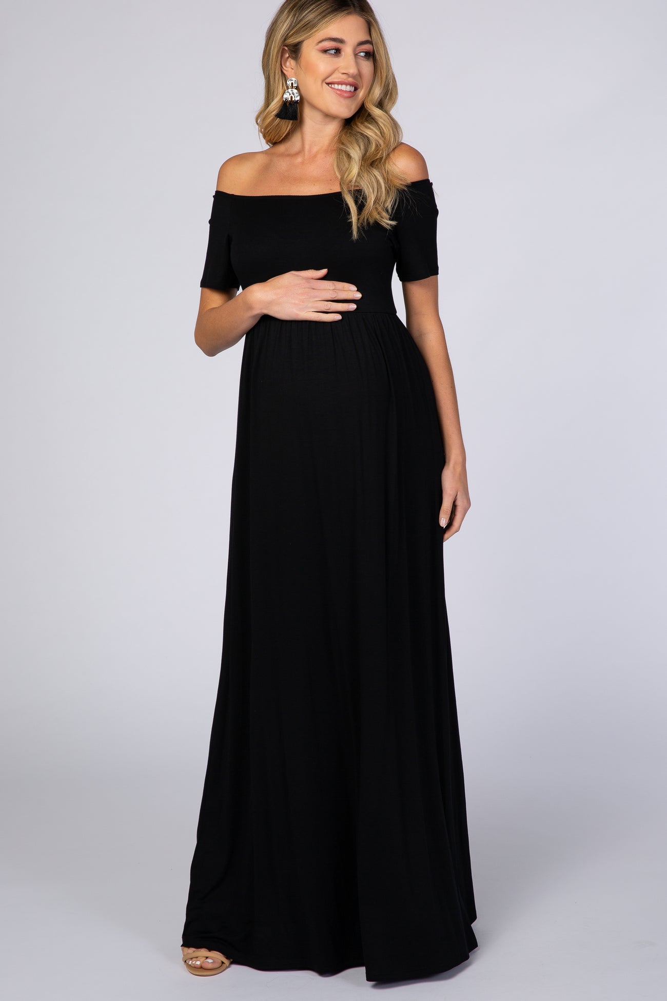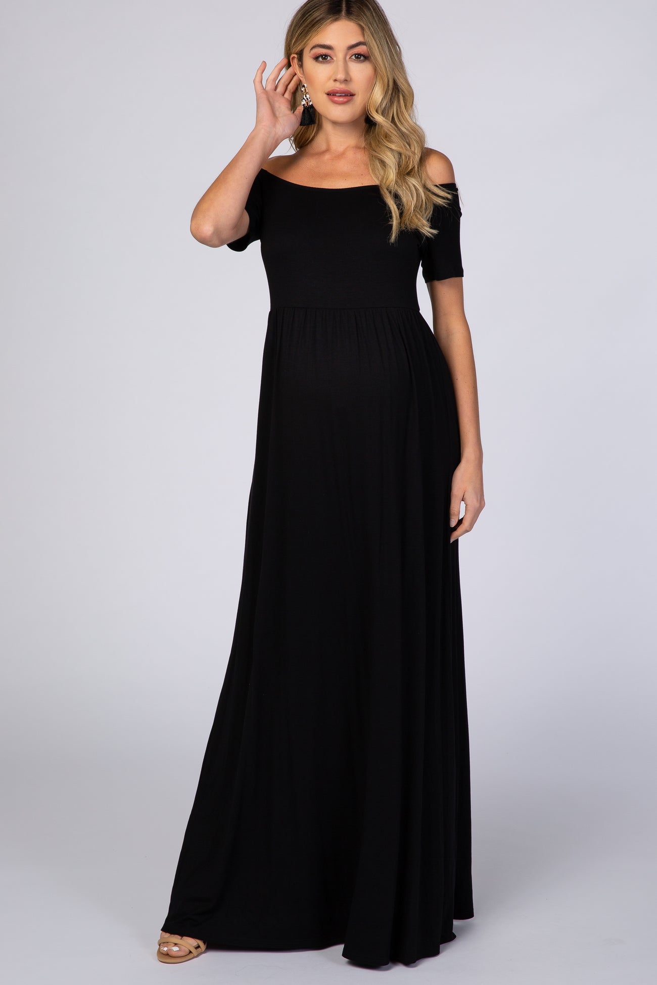PinkBlush Black Off The Shoulder Short Sleeve Maternity Maxi Dress