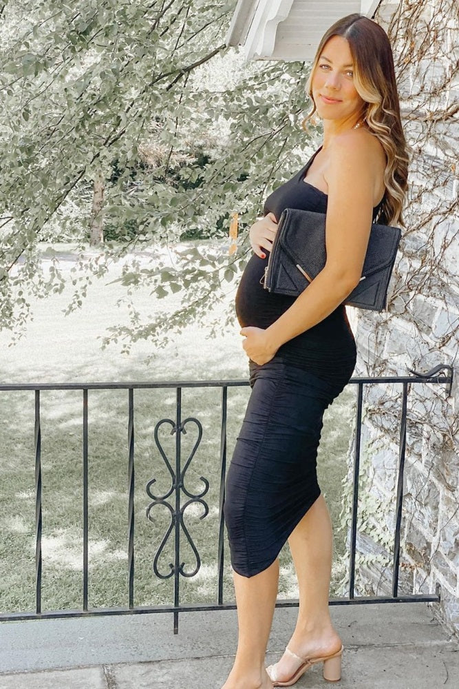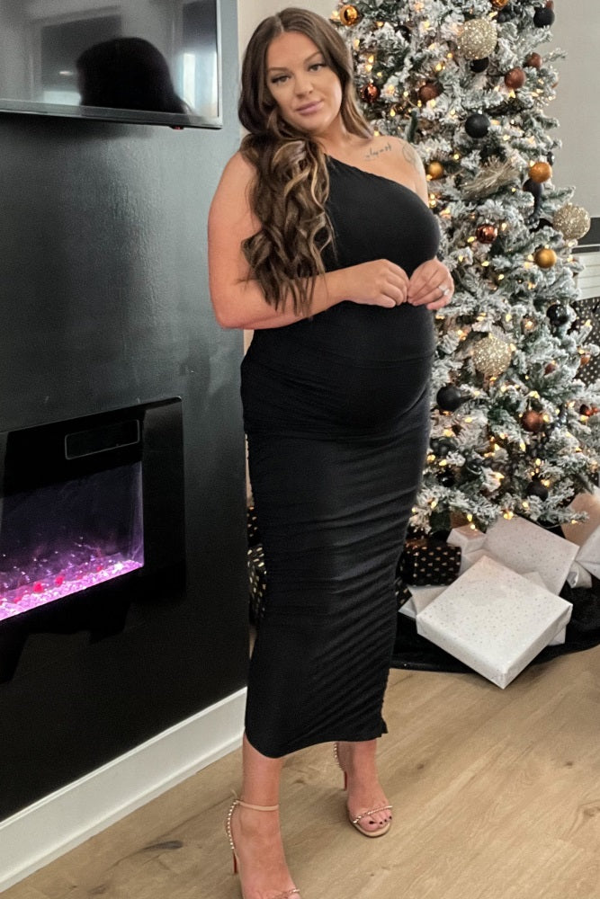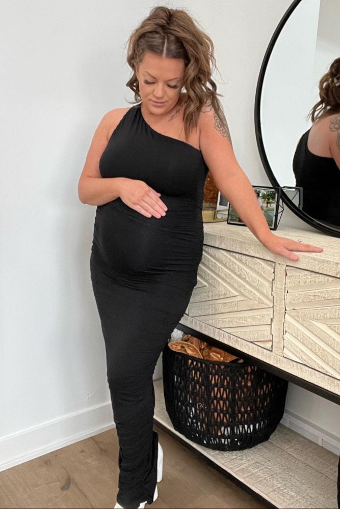 PinkBlush Black Ruched One Shoulder Maternity Dress