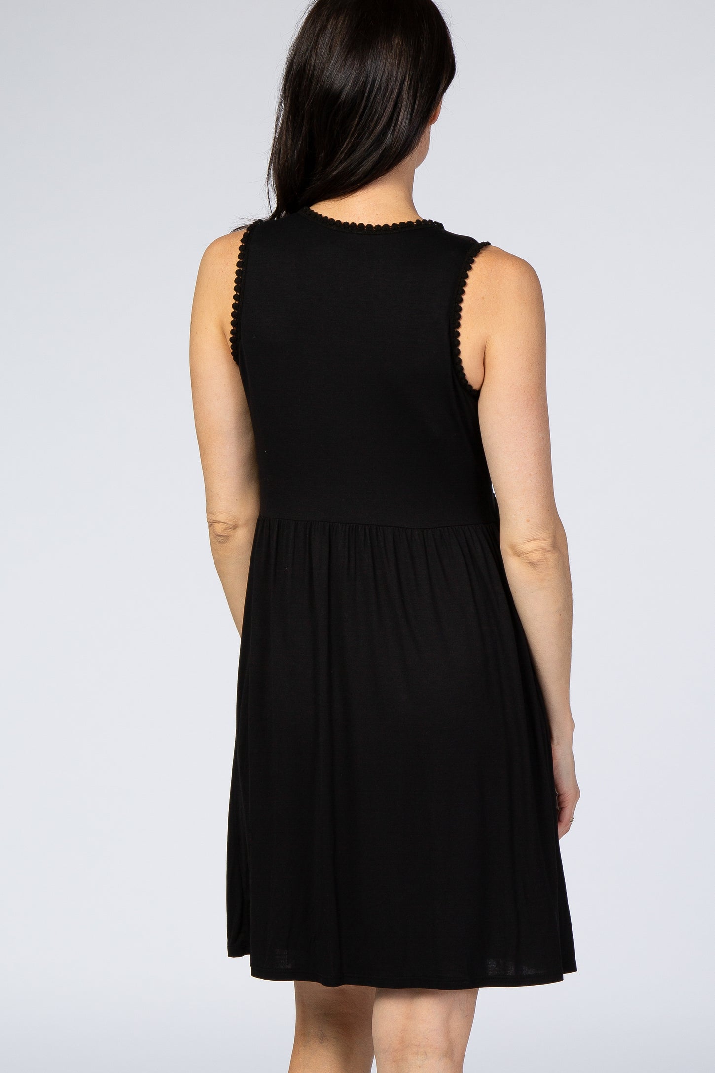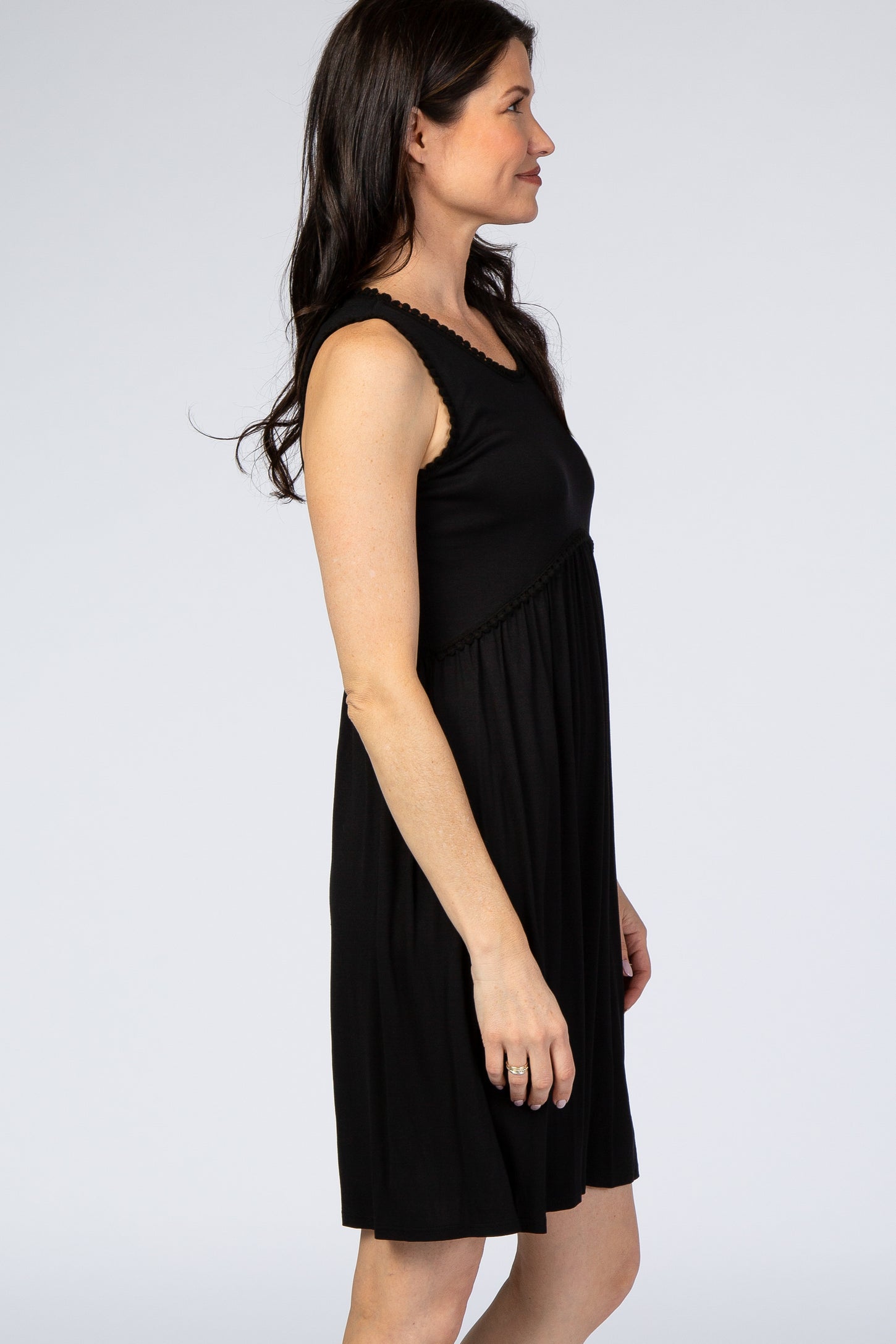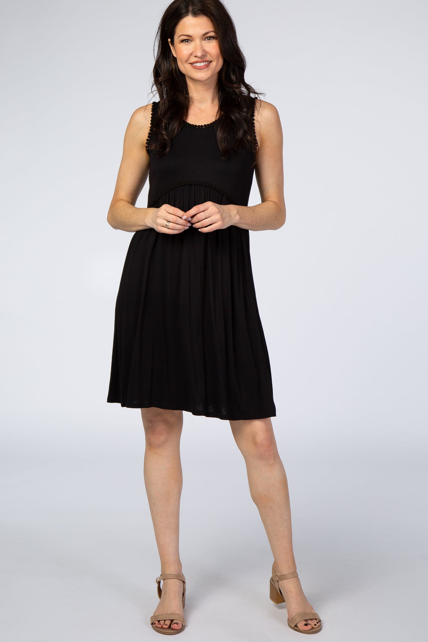 PinkBlush Black Sleeveless Round Neck Pom Pom Detail Dress