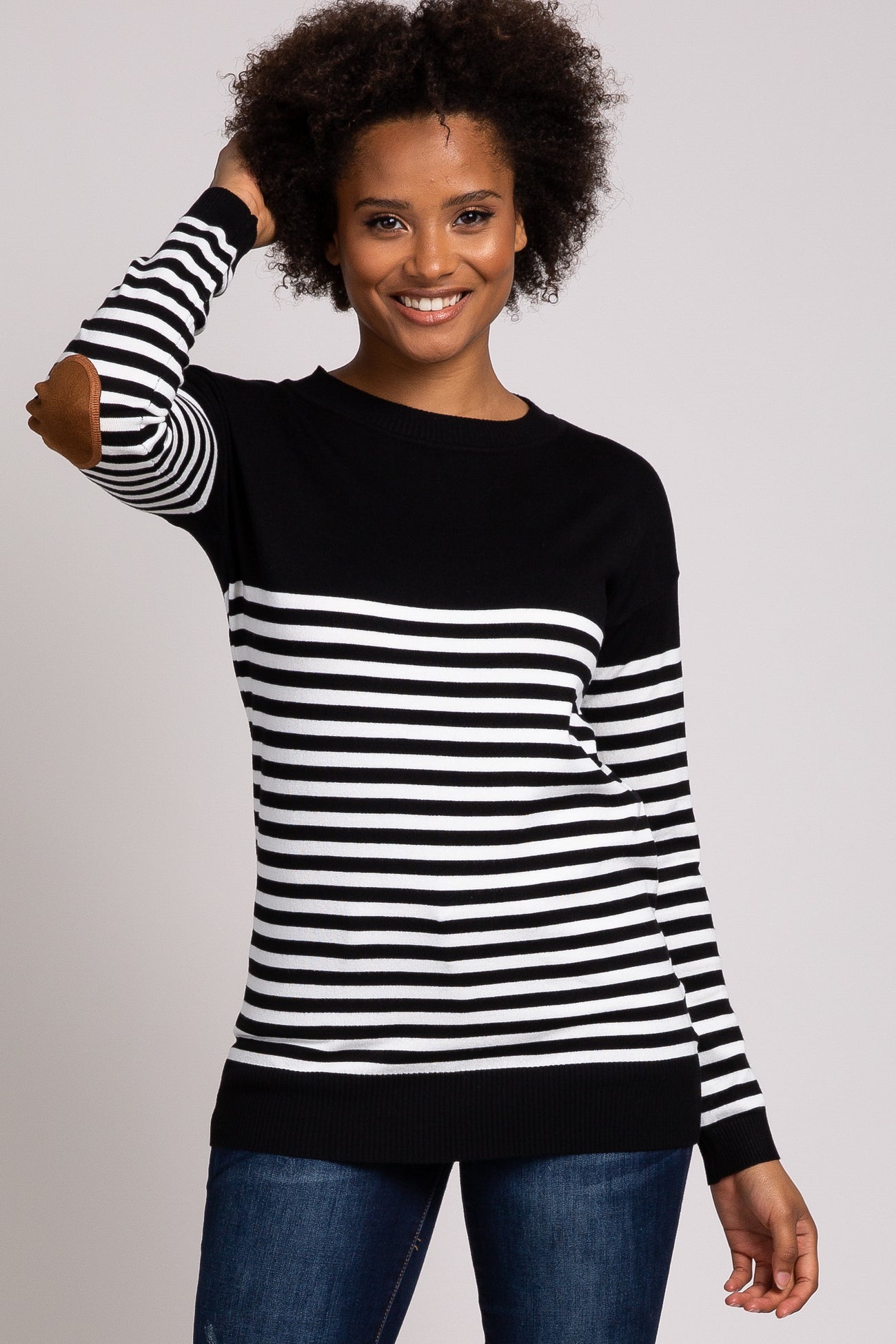 PinkBlush Black Striped Elbow Patch Knit Maternity Sweater