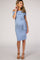 PinkBlush Blue Folded Off Shoulder Belted Fitted Maternity Dress