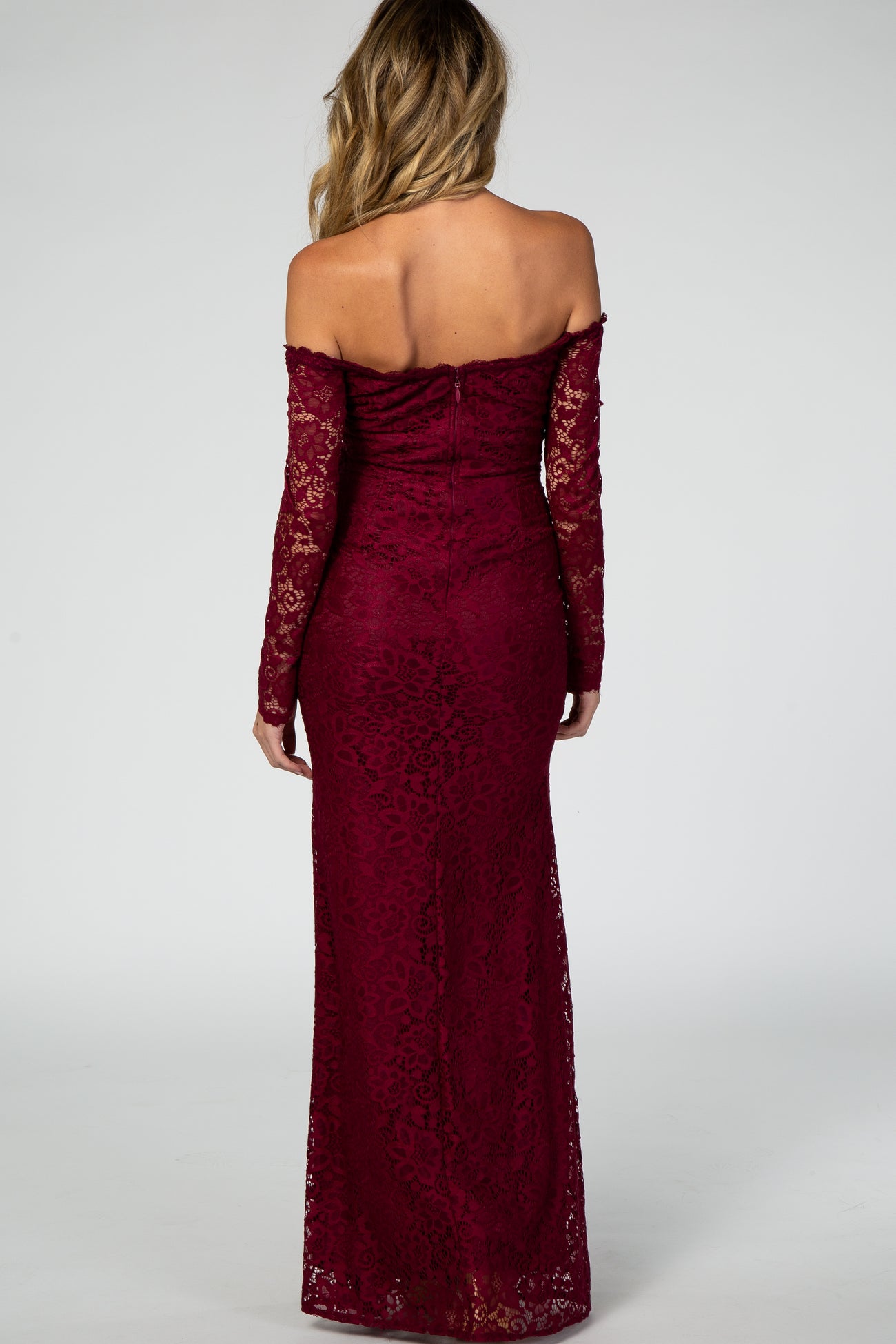 PinkBlush Burgundy Lace Off Shoulder Long Sleeve Maternity Maxi Dress