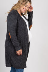 PinkBlush Charcoal Knit Elbow Patch Maternity Plus Cardigan