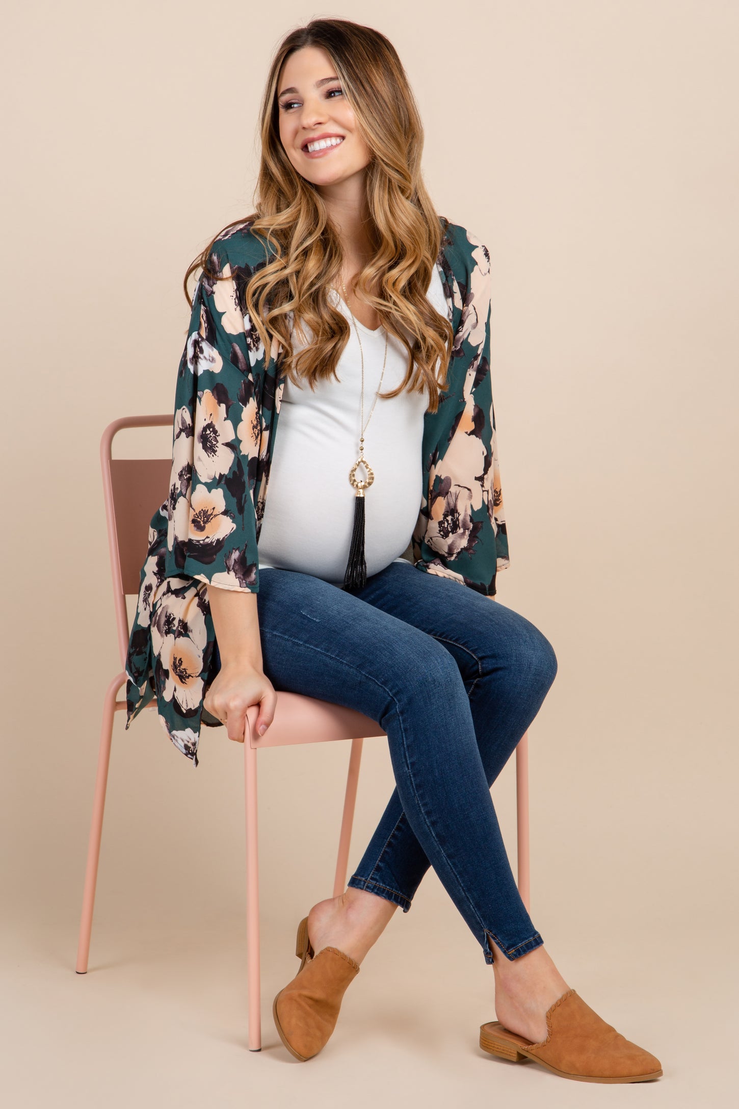 PinkBlush Green Floral Chiffon Maternity Cover Up