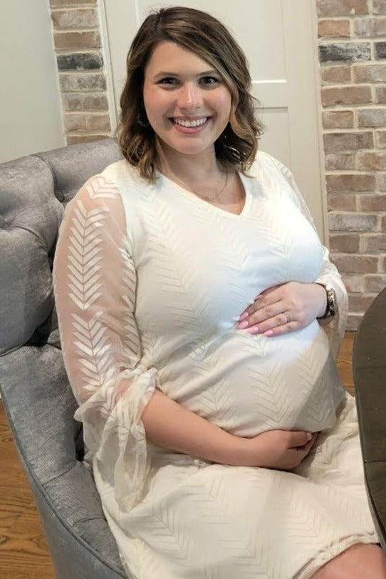 PinkBlush Ivory Chevron Mesh Overlay Maternity Dress