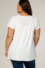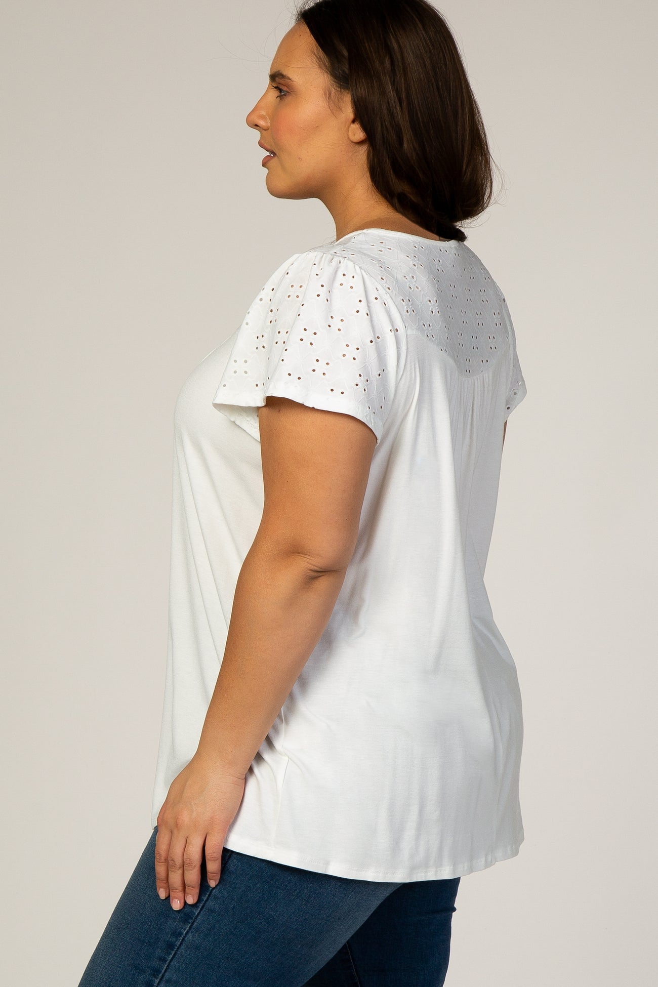 PinkBlush Ivory Eyelet Short Flutter Sleeve Plus Top
