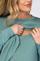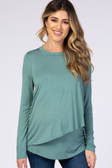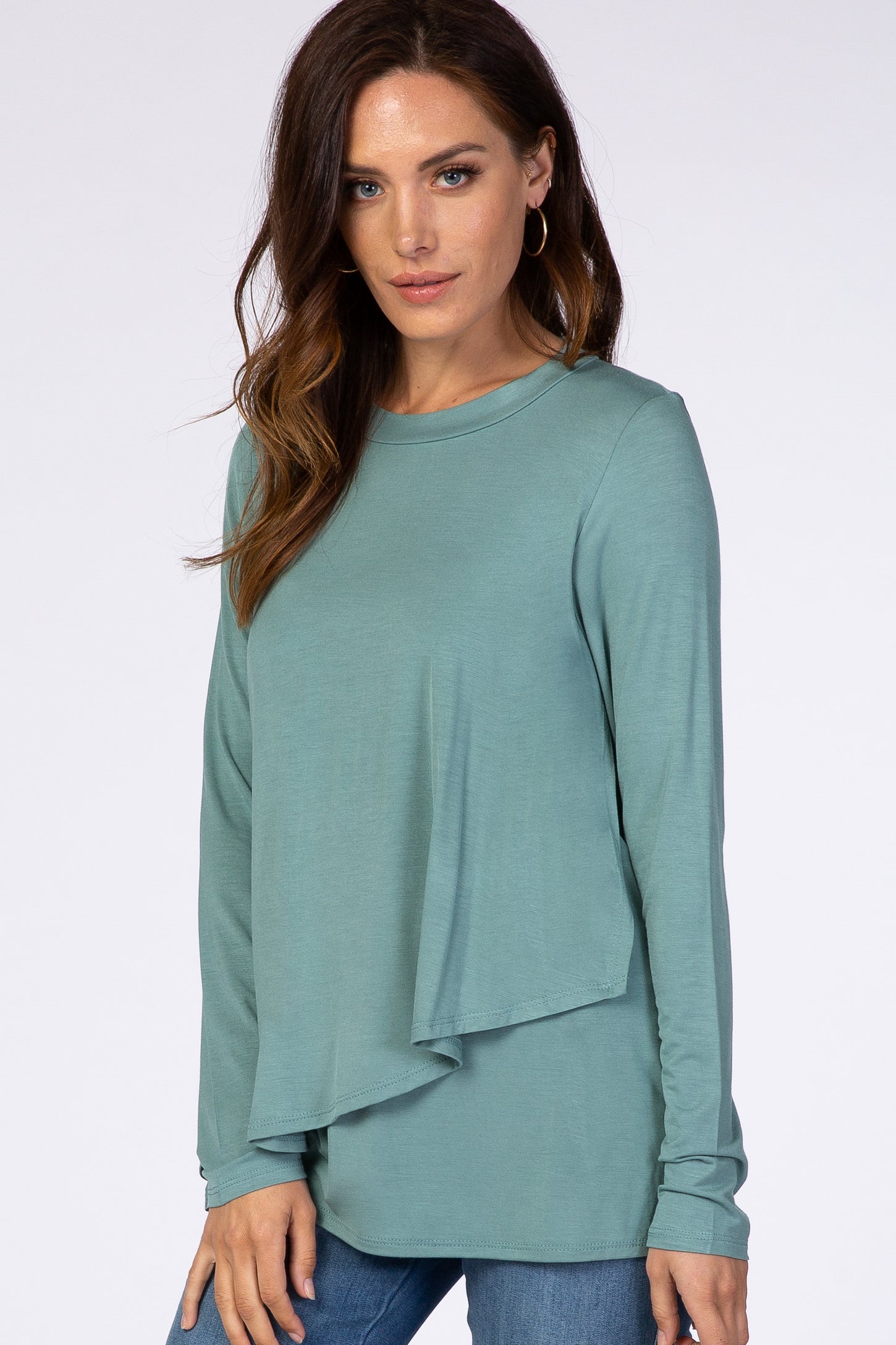 PinkBlush Light Olive Solid Layered Front Long Sleeve Maternity/Nursing Top