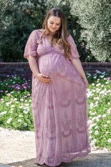 PinkBlush Mauve Lace Mesh Overlay Plus Maternity Maxi Dress
