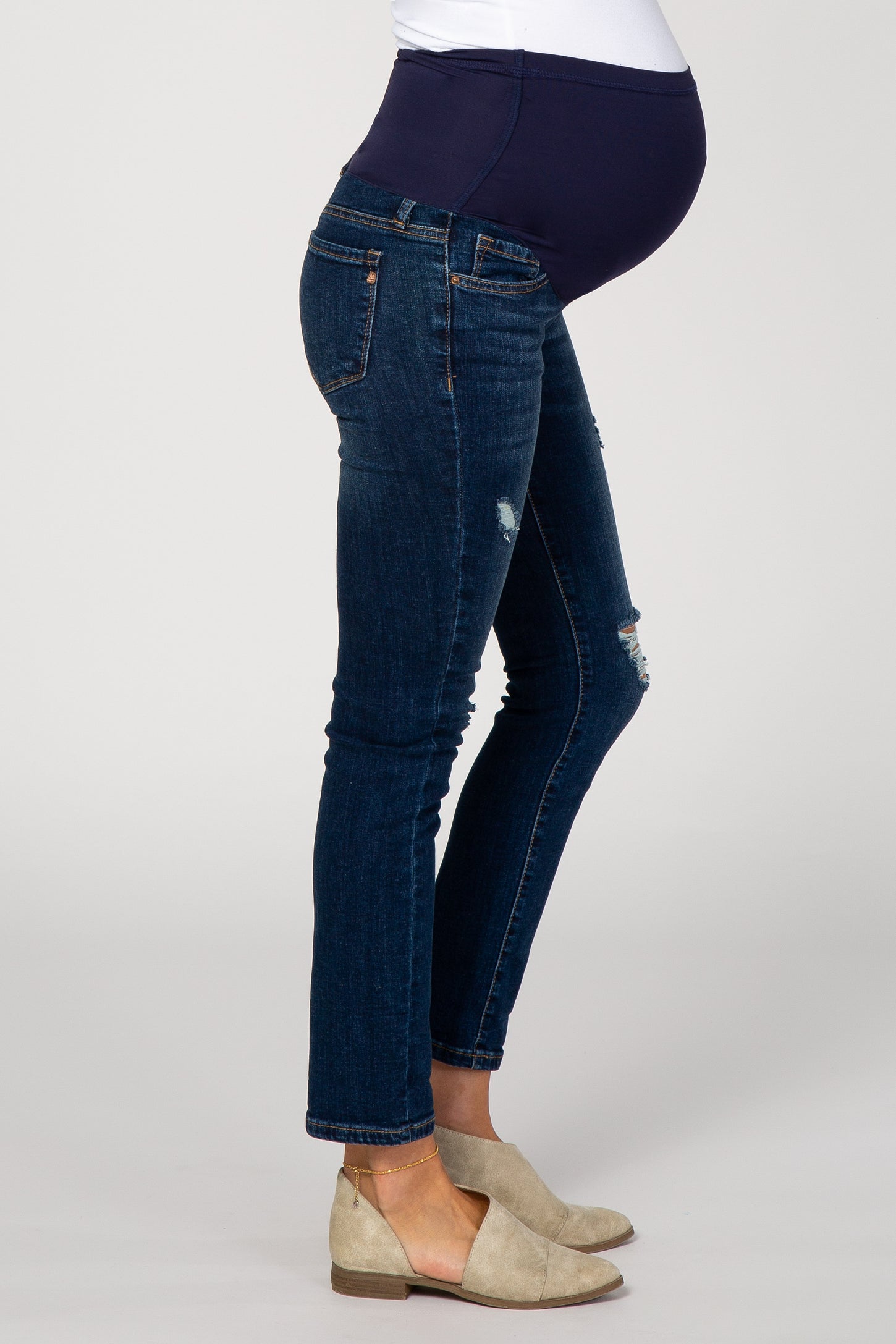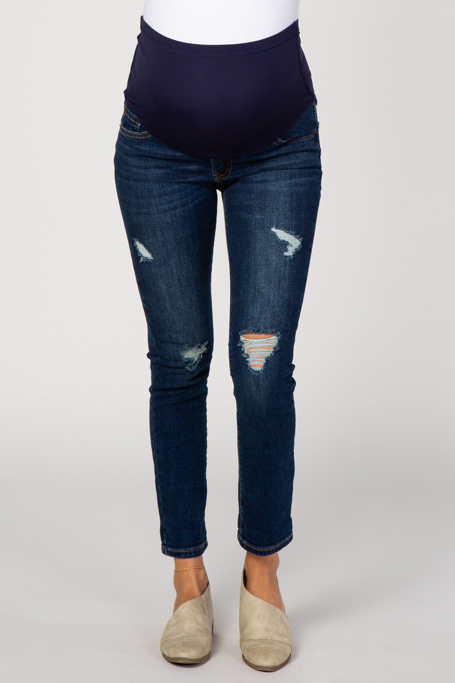 PinkBlush Navy Blue Distressed Maternity Skinny Jeans