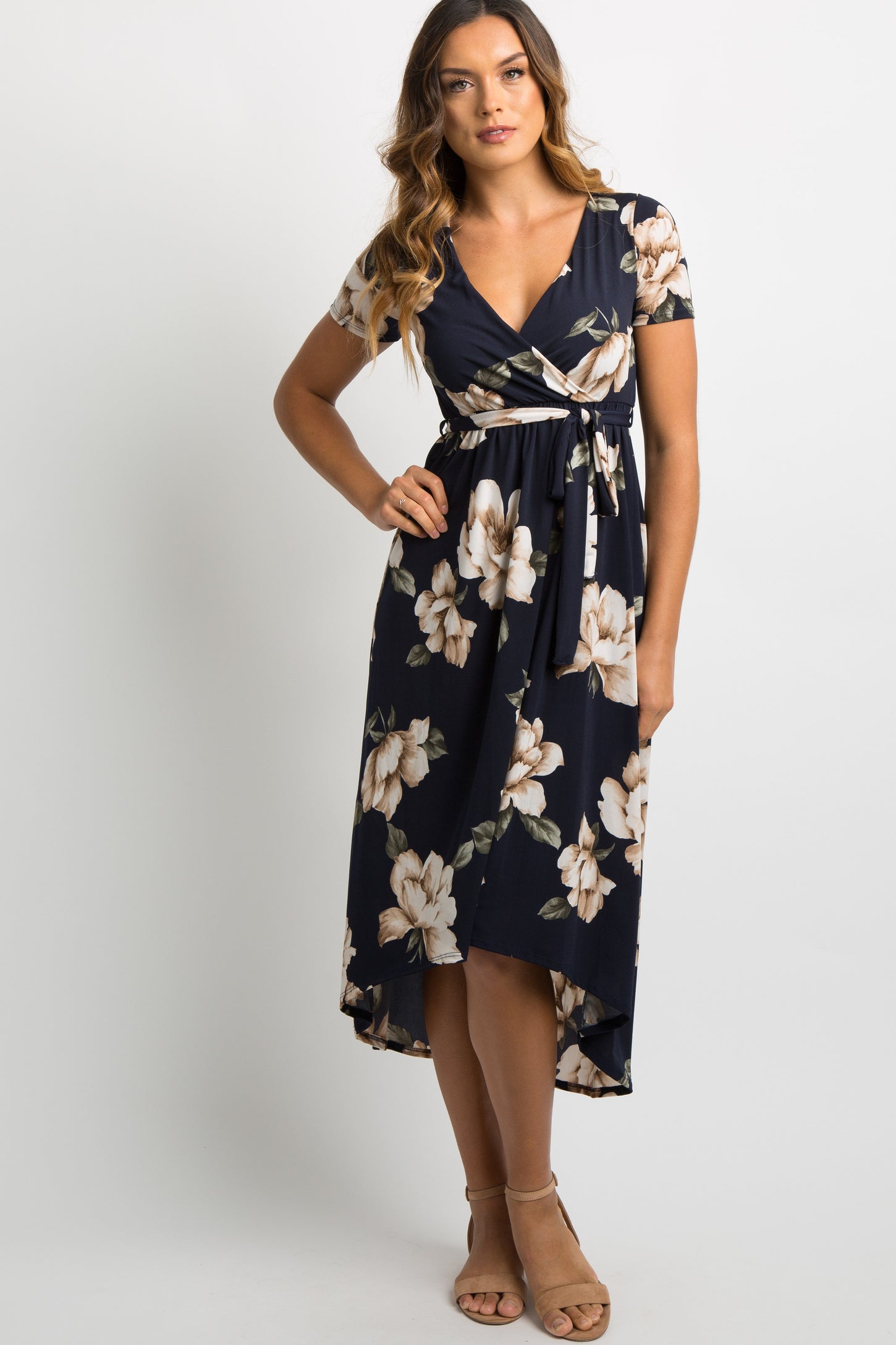PinkBlush Navy Blue Floral Hi-Low Maternity Wrap Dress