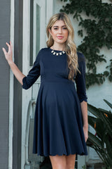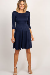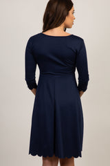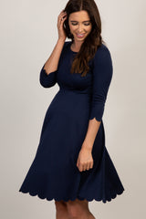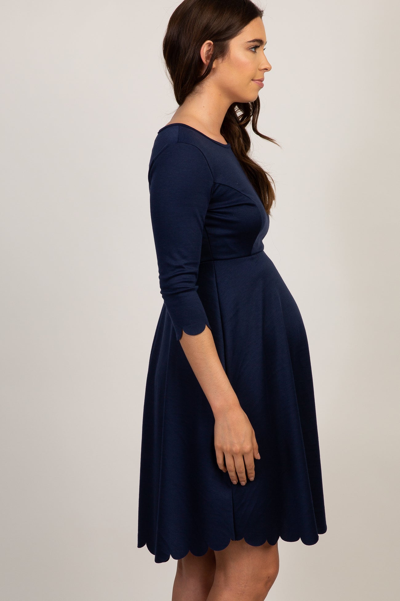 PinkBlush Navy Solid Scalloped Hem Maternity Dress
