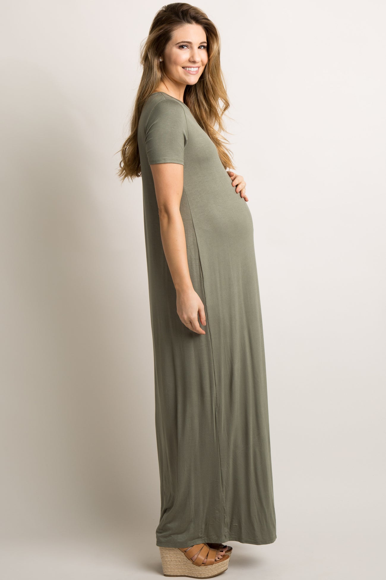 PinkBlush Olive Basic Side Slit Maternity Maxi Dress