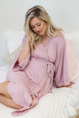 PinkBlush Pink Crochet Trim Delivery/Nursing Maternity Robe