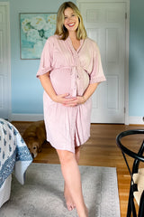 A solid delivery/nursing maternity robe to make sure your visit during and after the hospital is comfortable and stylish. This robe will make you feel beautiful through all of motherhood's transitions. With the gorgeous hues, feminine design, and lightweight material, you can have a beautiful piece to keep cool in.