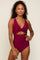 Plum Ruched Sides Front Cutout One Piece Swimsuit