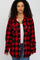 A plaid jacket featuring sherpa lining, front buttons, front pockets and a collared neckline.