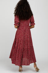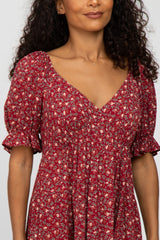 Red Floral V-Neck Ruffle Sleeve Midi Dress