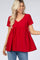 A peplum top featuring a swiss dot texture, short sleeves and a rounded v-neckline.