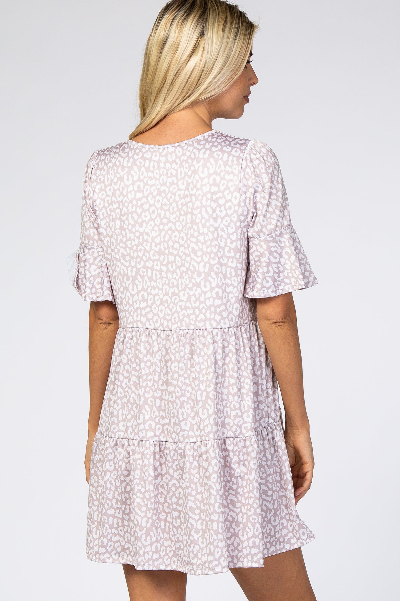 Taupe Animal Print Ruffle Sleeve Dress