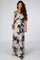 Taupe Navy Floral Off Shoulder Maxi Dress