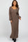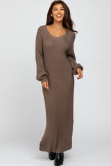 A sweater knit maxi dress featuring a rounded neckline, long sleeves and side slits.