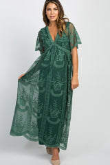 Details A lace mesh overlay maxi dress featuring beautiful scalloped trim, semi-sheer short bell sleeves and back, a v-neckline, and a hook and hidden zipper back closure. Bust and skirt are double lined to prevent sheerness. Content + Care