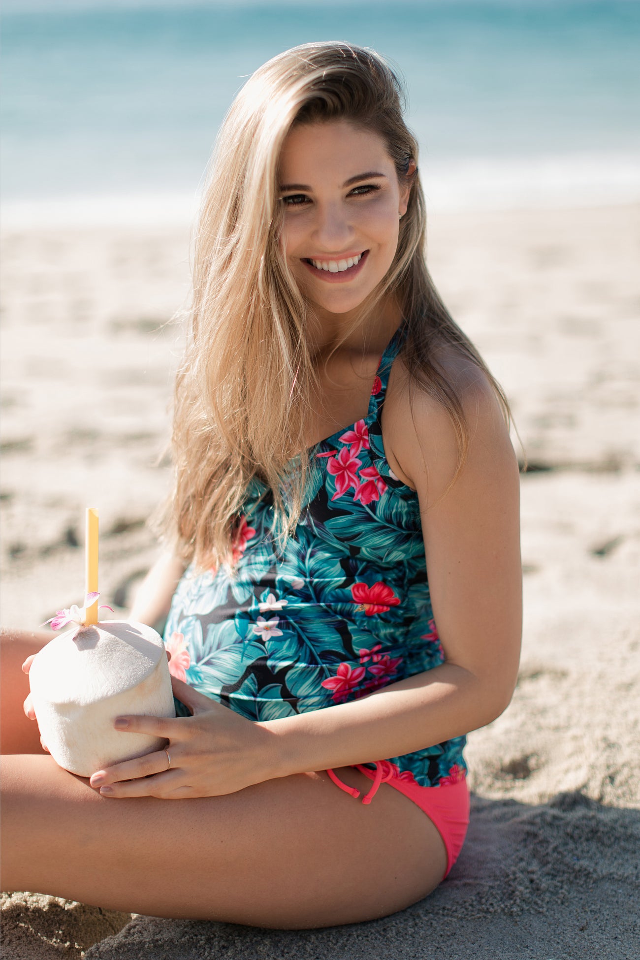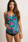 Teal Pink Hibiscus Wrap Front Maternity Tankini Top